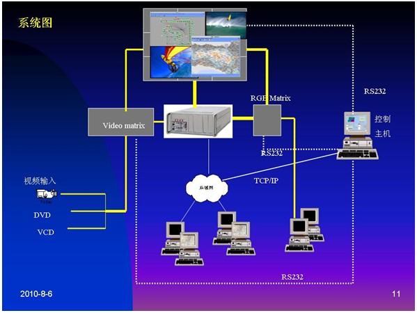 同时通过大屏幕拼接器,可以支持多路RGB信号、视频信号在大屏上以任意大小、任意位置、跨屏、整屏漫游等各种方式灵活显示。