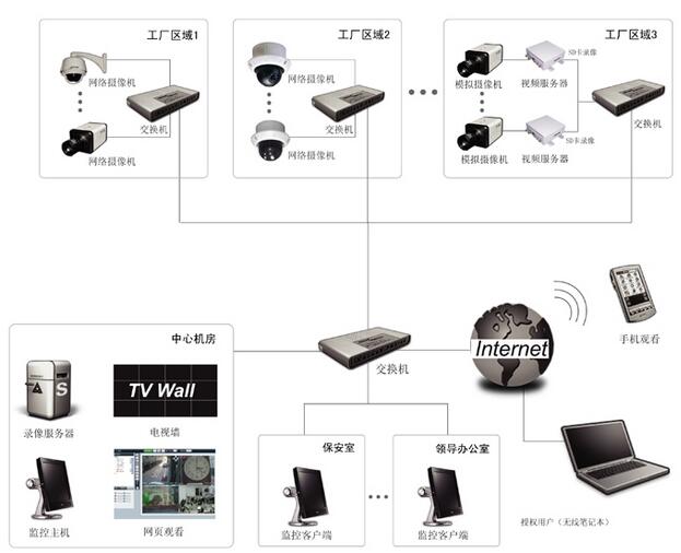 本监控系统采用统一的技术规范、兼容明晰的信息格式,将高性能的系统设备有机地集成在一起,构成一个高度自动化的闭路电视监控管理系统。它能在人们无法直接观察的场合,实时、形象、真实地反映被监视控制对象的状况,做到全天候24小时不间断进行,且能保证图像清晰、色彩真实、画面稳定和操作容易,并可在所处环境下长期可靠地运行。由于本系统只需一人在控制中心操作就可观察许多区域,甚至具有远距离区域监控的独特功能,是企业保安工作之必须手段。